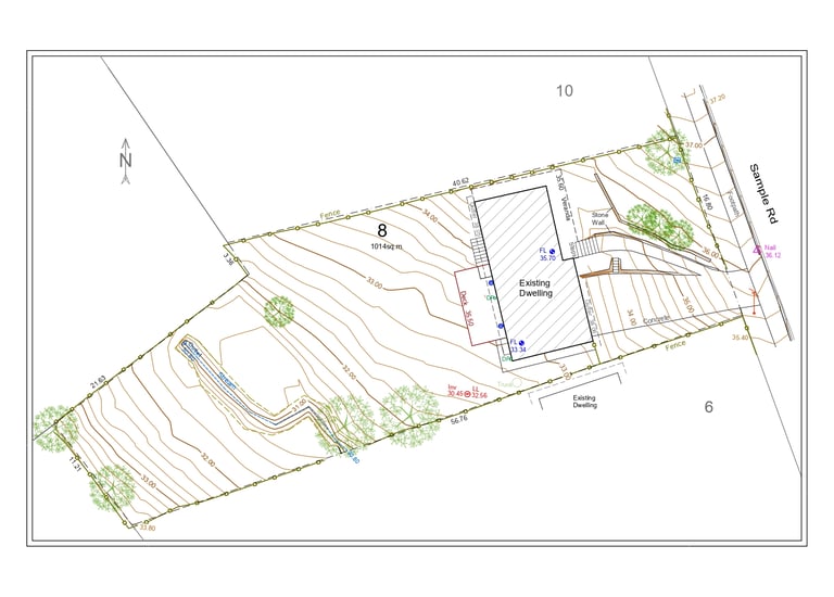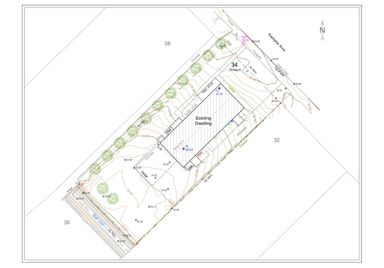 Topographical - Feature Survey on lot with existing houses for architectural design/extensions